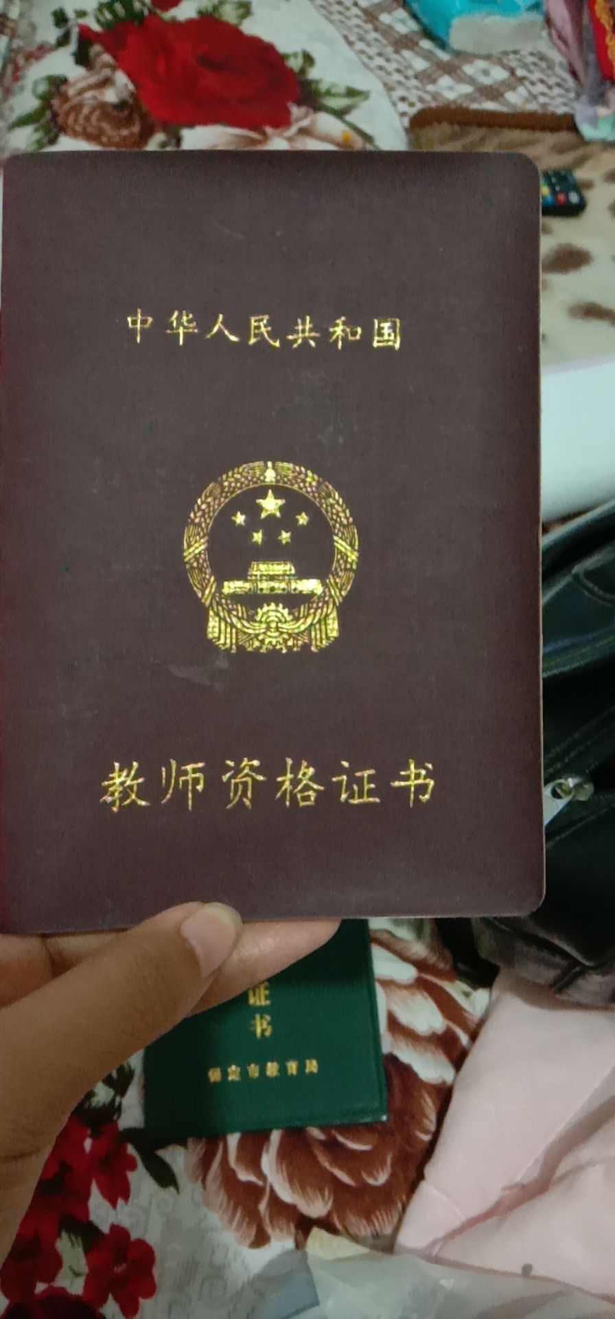 这是我的教师资格证。我想走出农村现在的年轻人也都会出外面最多因为工资待遇高回去。而爷爷留在农村的唯一目的是守着奶奶。