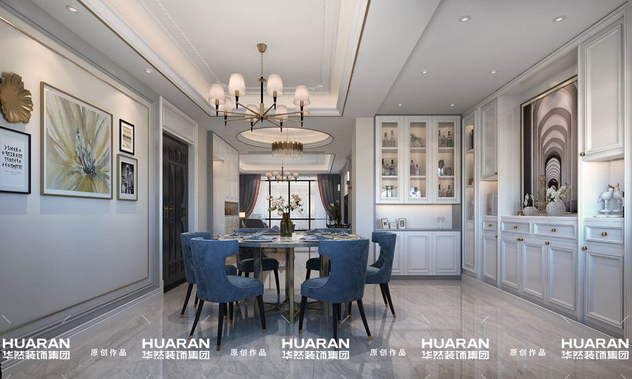 吊灯和皮质餐椅增强用餐时的仪式感。