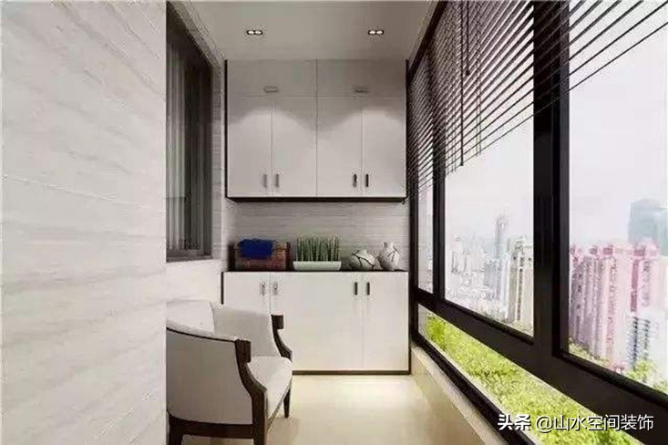 在阳台打造一个实用的收纳储物柜是最常见的方式,一面墙的收纳柜,一旁摆上一套别致的桌椅,实用兼具颜值功能,瞬间让家居生活空间的格调大大提升。